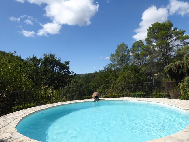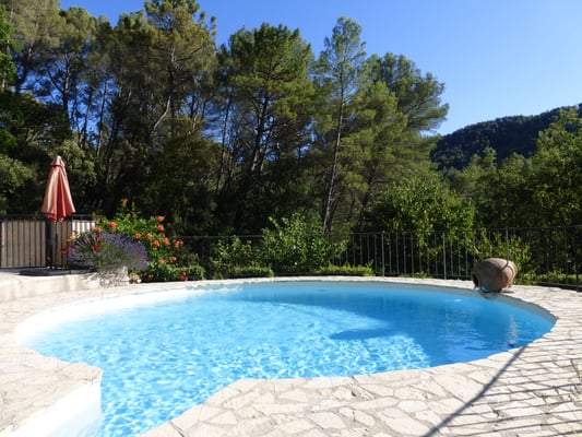 Quelques marches permettent d’accéder directement à la piscine (8 m ⵁ) avec douche et toilettes indépendantes.