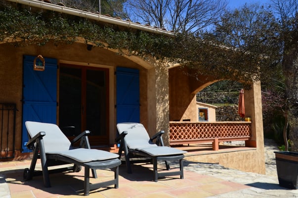 grande porte-fenêtre du salon vous accédez directement aux différentes terrasses qui vous offrent une vue dégagée sur une nature