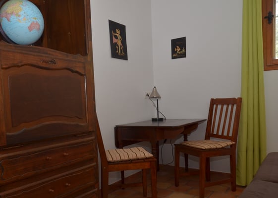 sous la fenêtre, avec un lit double (1,60 x 2 m) et un banc du lit.