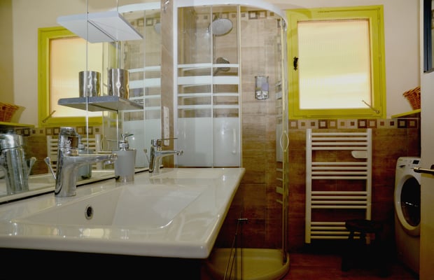 Au même niveau se trouvent les toilettes séparées ainsi que la salle de douche avec deux lavabos, une cabine de douche et un lave linge.